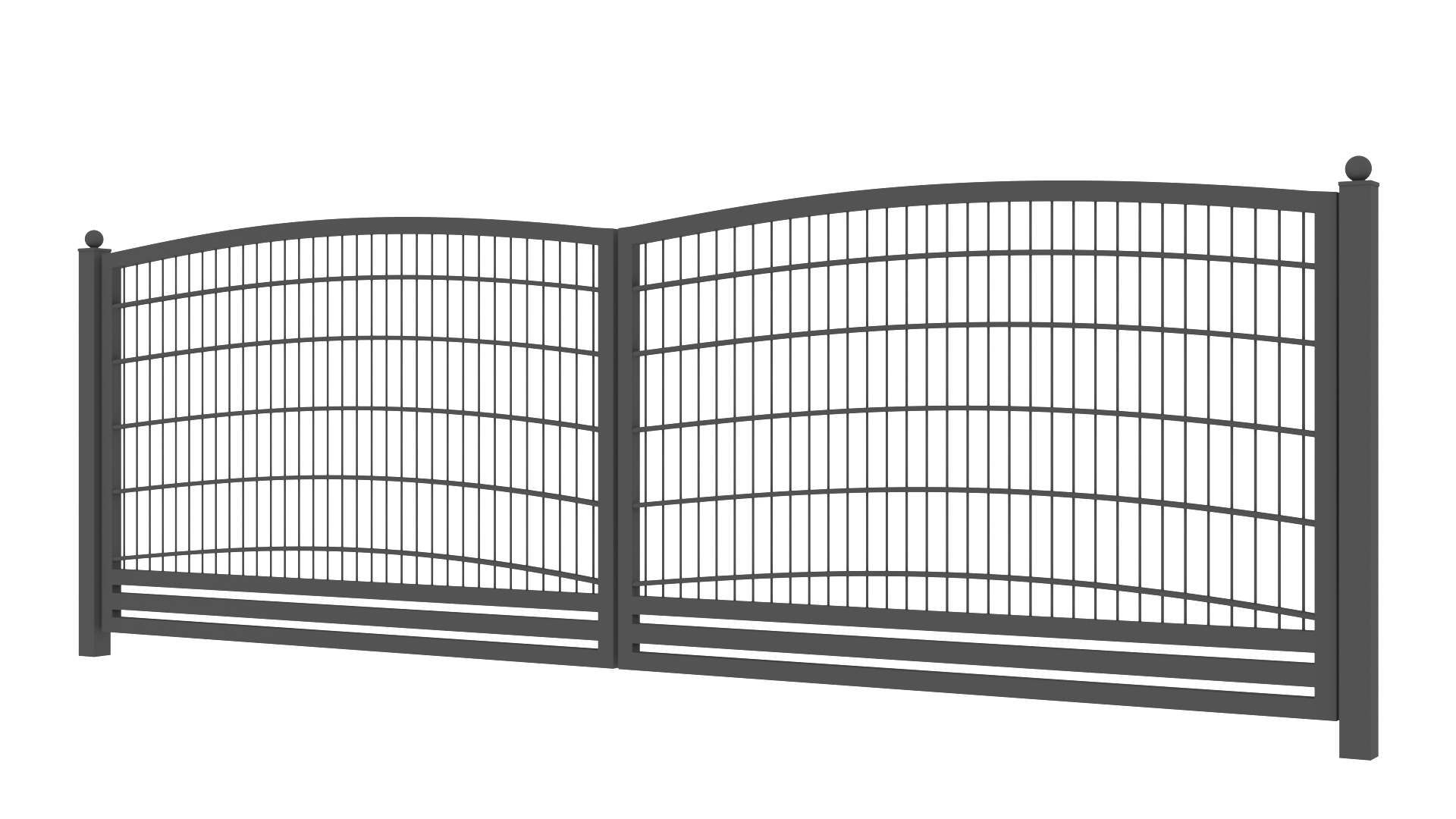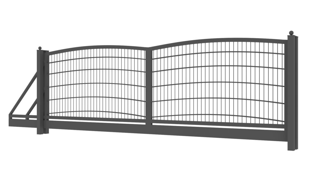 Panele tworzone są z drutów pionowych o średnicy 5mm oraz podwójnych prętów poziomych tworzących wzór o średnicy 8mm. Słupy zastosowane do przęseł to 60×60 lub 80×80 wyposażony w komplet obejm oraz zakończony metalowym daszkiem. Podmurówka ma wysokość 25cm, jest montowana na łącznikach betonowych lub ceownikach metalowych. Do każdego wzoru produkujemy bramy dwuskrzydłowe lub przesuwne oraz furtki.