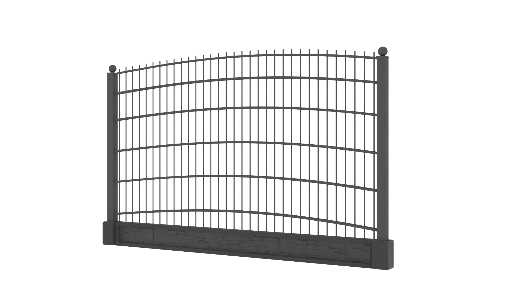 Przęsła, które tworzymy są bardzo łatwe w montażu. System ich instalacji jest identyczny jak w przypadku paneli ogrodzeniowych 3D. Panele łączymy z słupkiem za pomocą obejmy montażowej. Przy słupku na dole, po zabetonowaniu go, stosujemy łącznik betonowy lub ceownik metalowy, w który wsuwamy płytę betonową.
