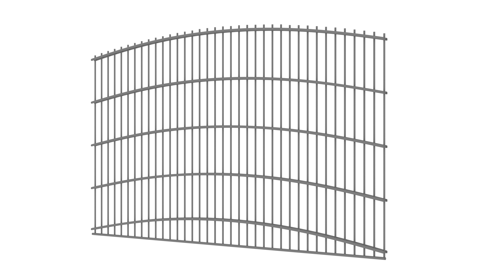 Panele tworzone są z drutów pionowych o średnicy 5mm oraz podwójnych prętów poziomych tworzących wzór o średnicy 8mm. Słupy zastosowane do przęseł to 60×60 lub 80×80 wyposażony w komplet obejm oraz zakończony metalowym daszkiem. Podmurówka ma wysokość 25cm, jest montowana na łącznikach betonowych lub ceownikach metalowych. Do każdego wzoru produkujemy bramy dwuskrzydłowe lub przesuwne oraz furtki.Standardowa wysokość panela to 127cm, a w przypadku paneli o półokrągłej górze to 135cm w najwyższym punkcie. Szerokość to 250cm. Istnieje możliwość docięcia panela pod wymiar.