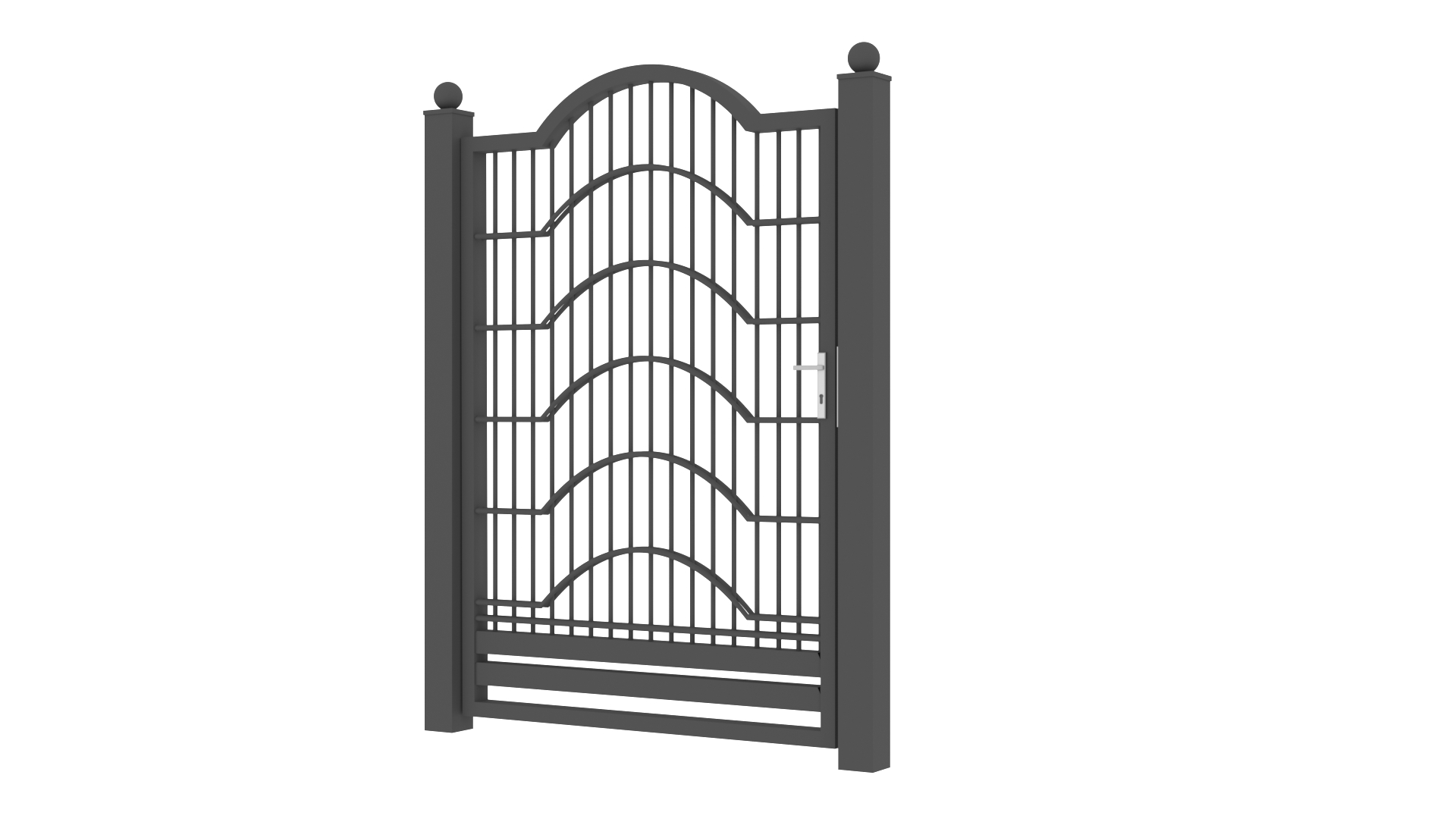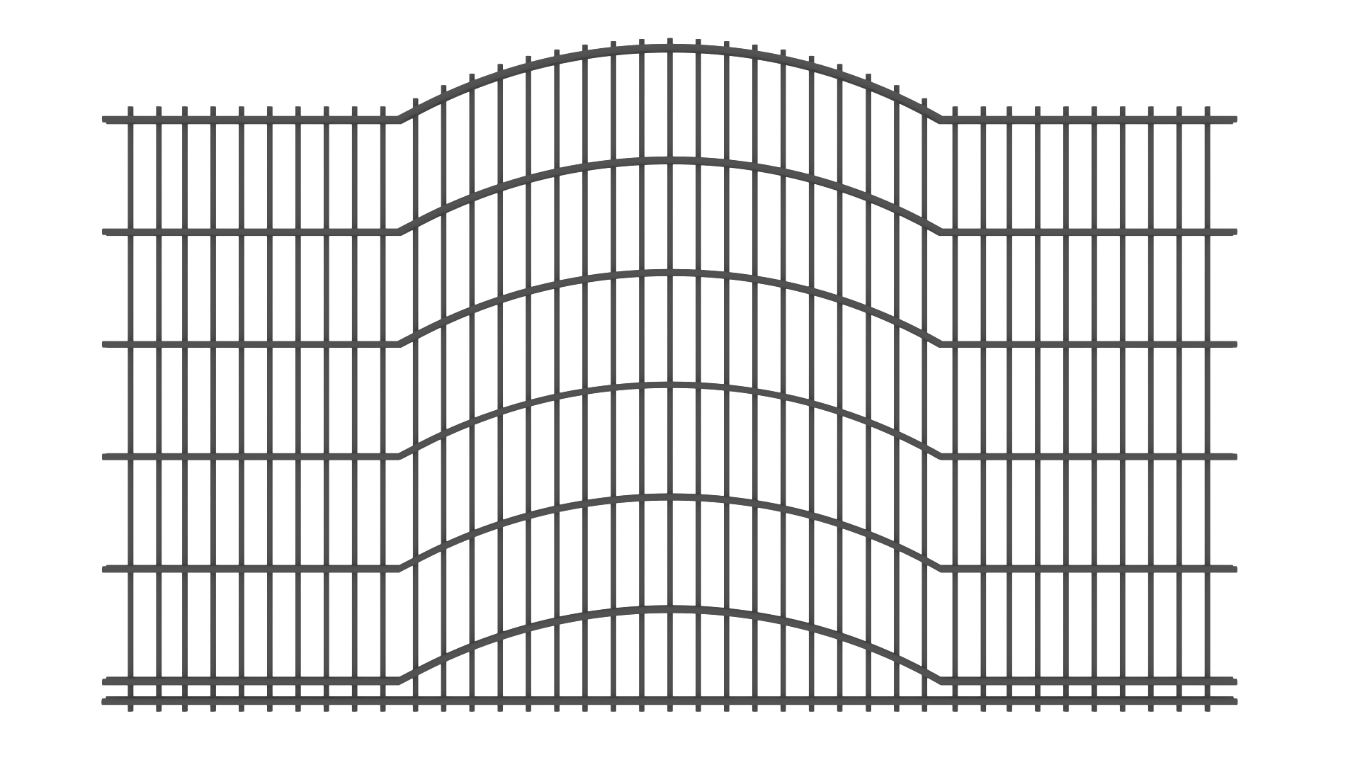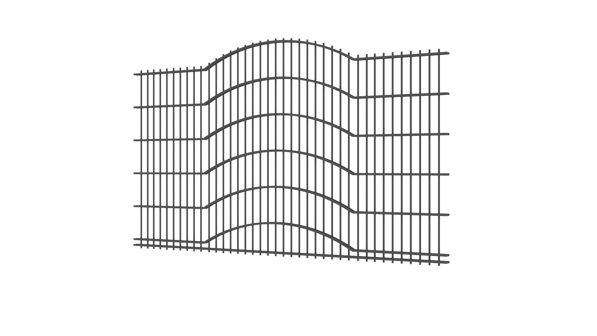 Panele tworzone są z drutów pionowych o średnicy 5mm oraz podwójnych prętów poziomych tworzących wzór o średnicy 8mm. Słupy zastosowane do przęseł to 60×60 lub 80×80 wyposażony w komplet obejm oraz zakończony metalowym daszkiem. Podmurówka ma wysokość 25cm, jest montowana na łącznikach betonowych lub ceownikach metalowych. Do każdego wzoru produkujemy bramy dwuskrzydłowe lub przesuwne oraz furtki.