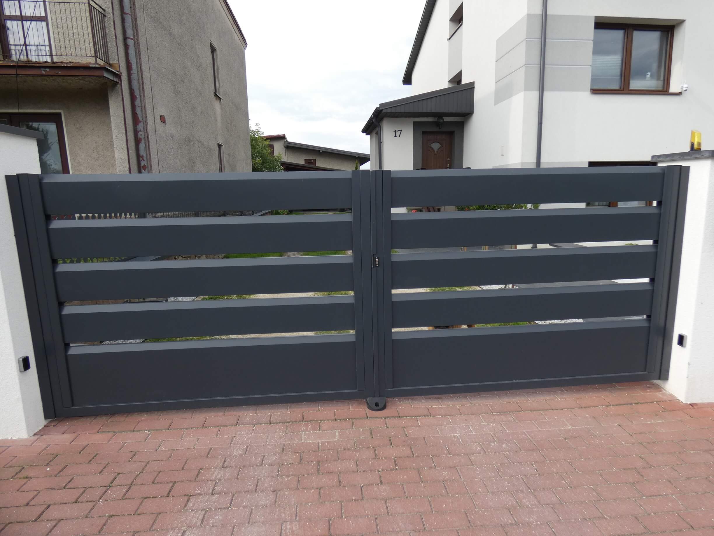 Wykończenie: możliwość wyboru różnych szerokości profili oraz zastosować różne przerwy między profilami w bramie co pozwala stworzyć nowoczesny minimalistyczny styl, który harmonijnie wkomponuje się w otoczenie nadając przestrzeni i elegancję